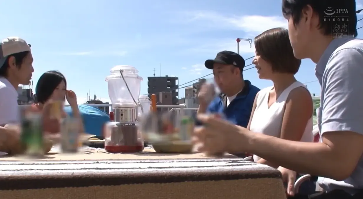 During a rooftop camping trip organized by Yamada's boss, his young and beautiful wife Kaho is gradually made drunk and manipulated by the boss. Under the pretext of the effects of alcohol, he openly seduces her right in front of her sleeping husband.