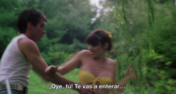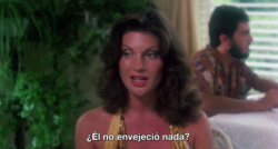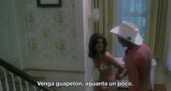 “Take Off” stands as one of the pinnacles of adult cinema of its era, but also as the masterpiece of its director, Anthony Spinelli, perhaps alongside the masterful “SexWorld,” and not so much for its explicit content as for its conceptual sophistication and cinematic technique. Spinelli undoubtedly solidifies his talent behind the camera, showcasing transition techniques and emulsion treatments in a sensational way. It is a tribute to cinema of all times, from those films by the master William A. Wellman, with James Cagney playing a gangster, to a brilliant parody of Humphrey Bogart's "Casablanca".